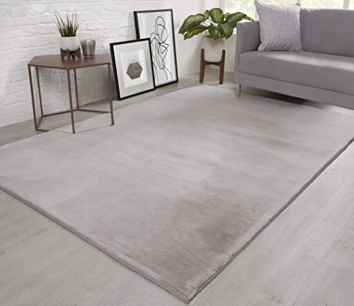 NATURAL FAUX RABBIT FUR Rug Ultra Soft Plush Extra Large Animal Rugs Living Room Wool Shaggy Fluffy 26mm Thick Pile Height Modern Area Rugs - (Silver Light Grey, 160cm x 230cm (5.5ft x 7.5ft))